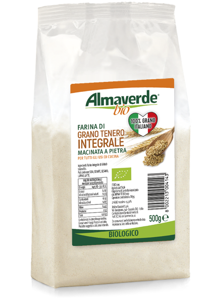 Farina biologica di grano tenero integrale macinata a pietra. La macinazione a pietra è un’antica arte molitoria che consente di preservare al meglio i principi nutritivi del cereale.