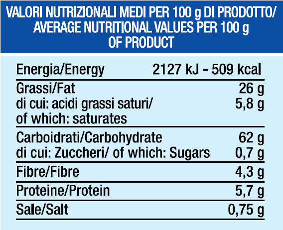 Può contenere SOIA, SENAPE, LUPINO, LATTE e SESAMO.