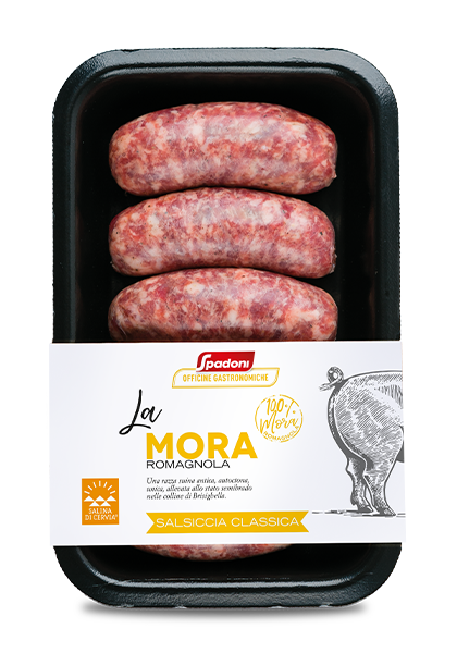 Salsiccia classica 100% di Mora Romagnola, ideale per grigliata oppure per preparare il sugo.