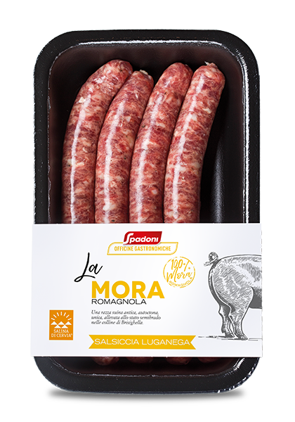 Salsiccia Luganega 100% di Mora Romagnola è la classica salsiccia arrotolata, più sottile, ideale per grigliata.